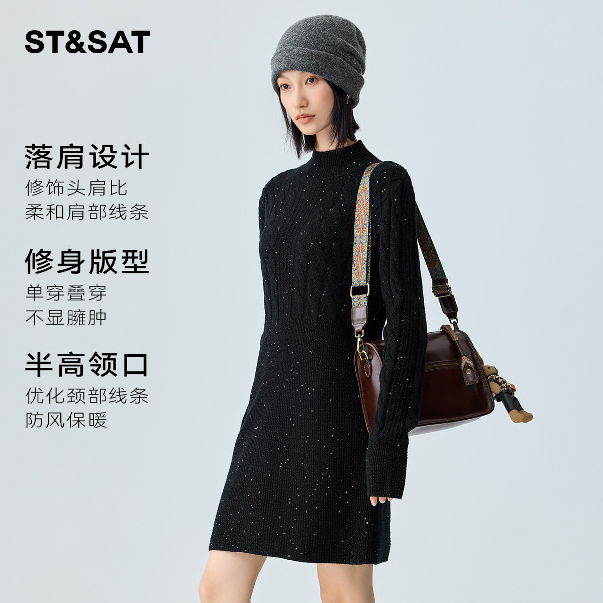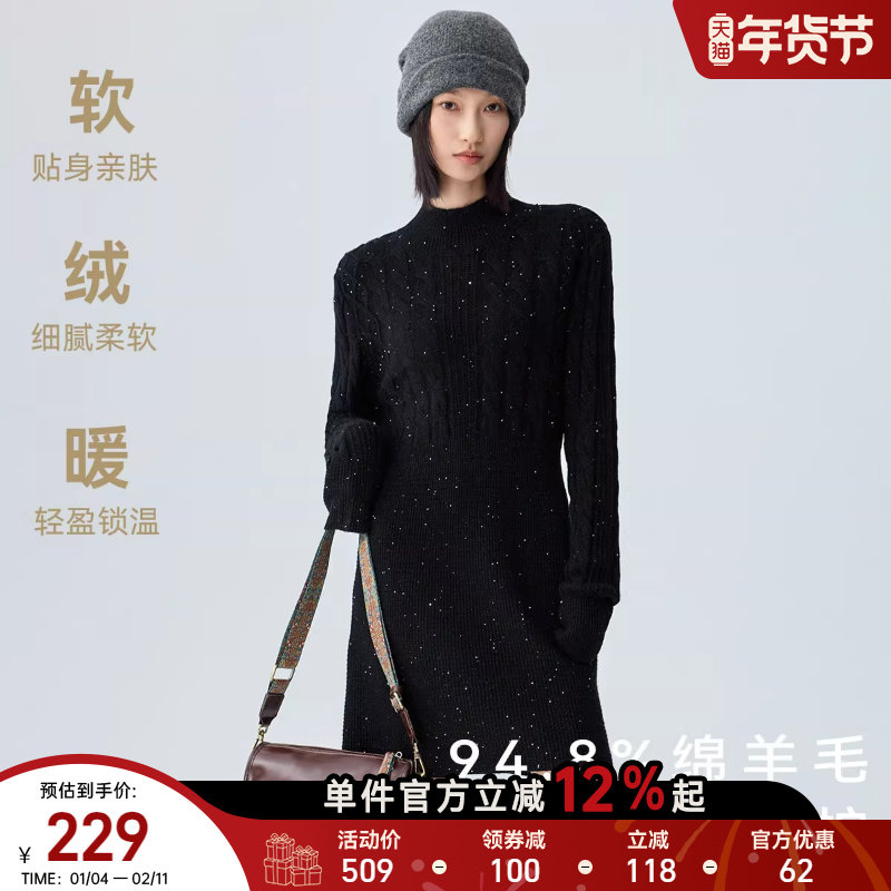 【100%绵羊毛】星期六高级感针织连衣裙子2025冬季新款气质毛衣裙