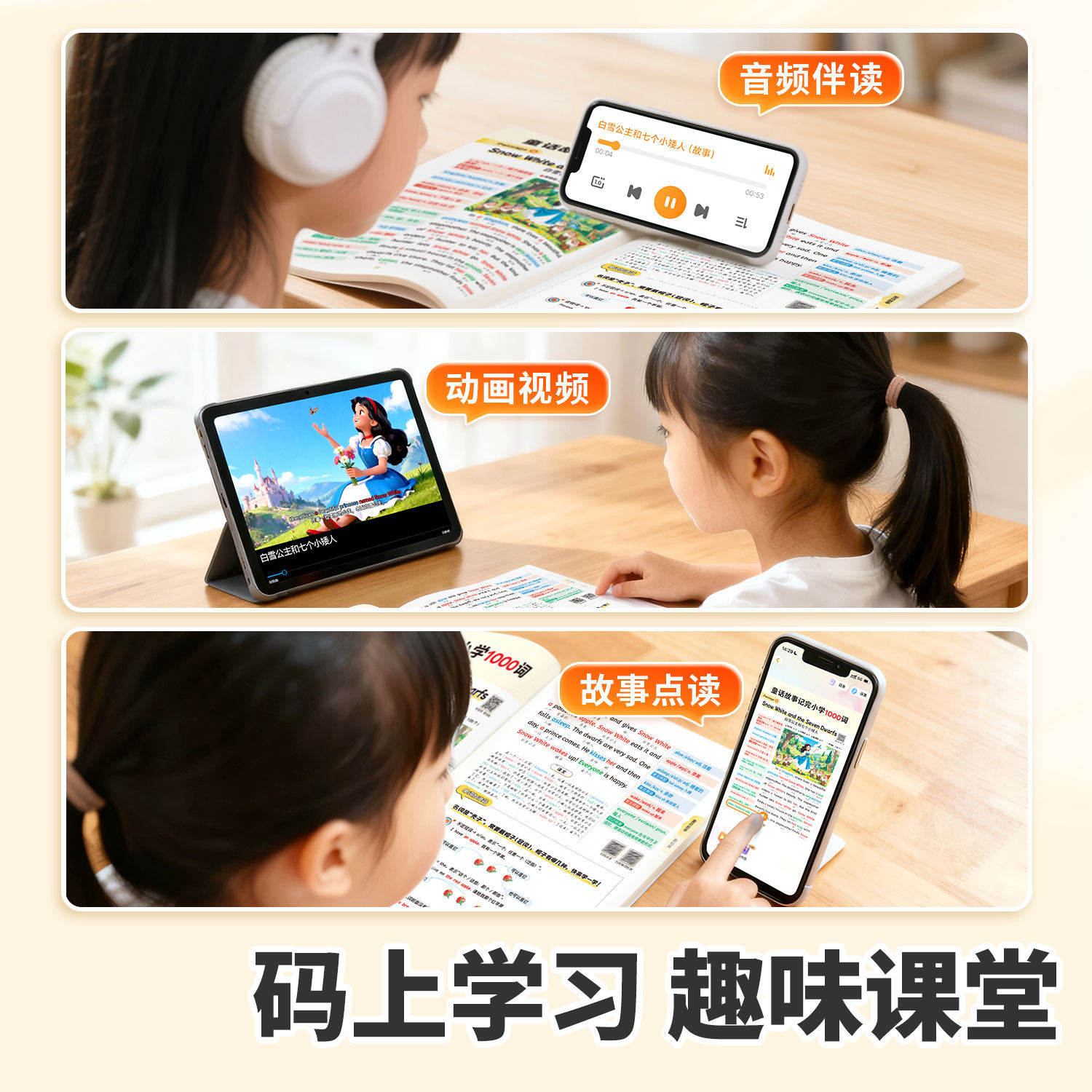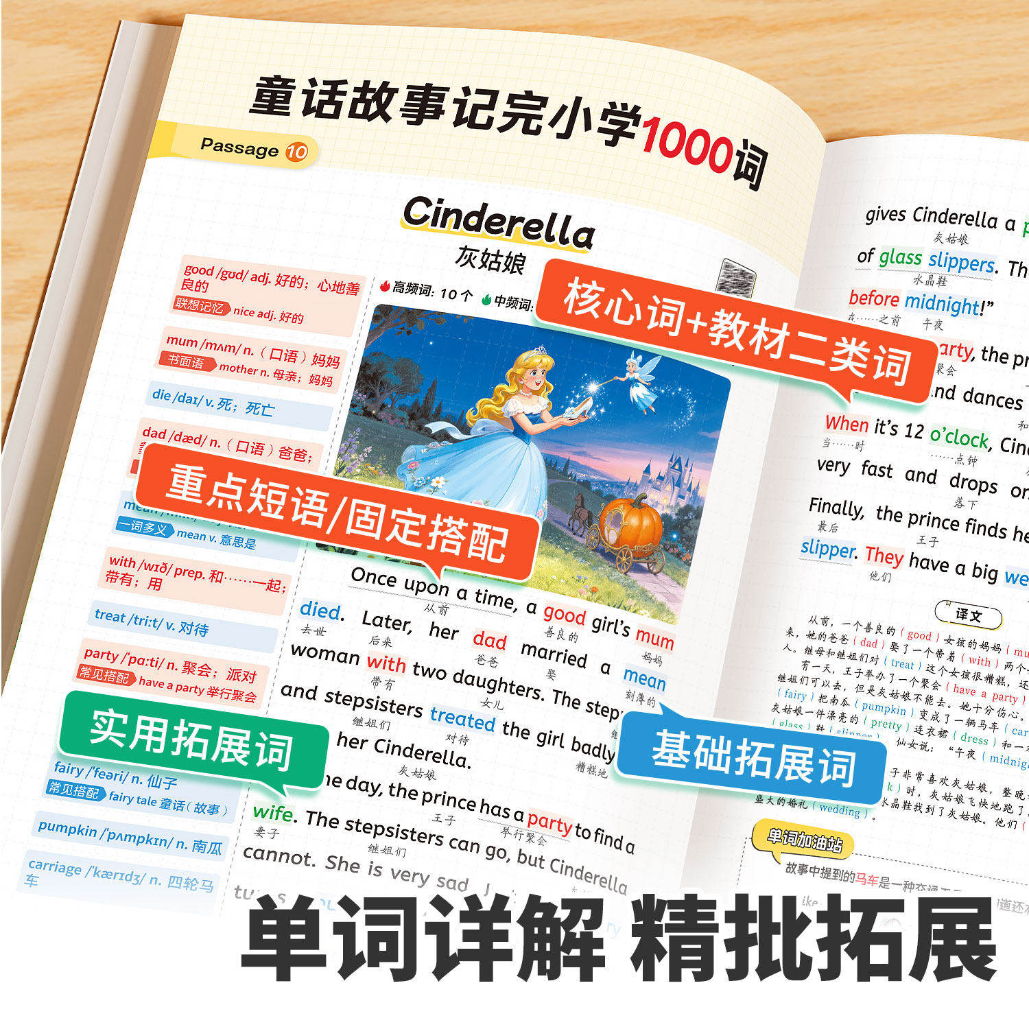 40篇英语童话故事记完小学1000词学生记忆单词每日晨读晚读配套动漫音频中英互译基础练习自然拼读趣味记单词