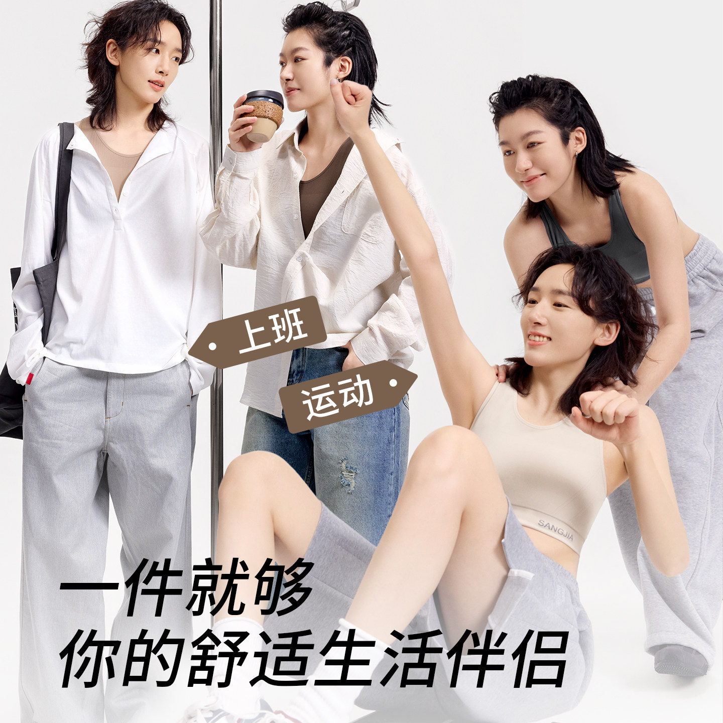 桑嘉自适应束胸内衣一体织运动背心大胸显小平胸神器学生缩胸cos