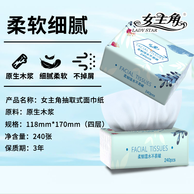 女主角240张抽纸柔厚4层纸巾餐巾纸面巾纸擦手纸纸抽家用好物厨房