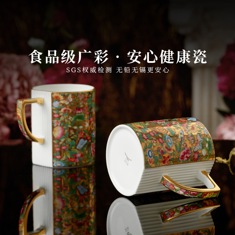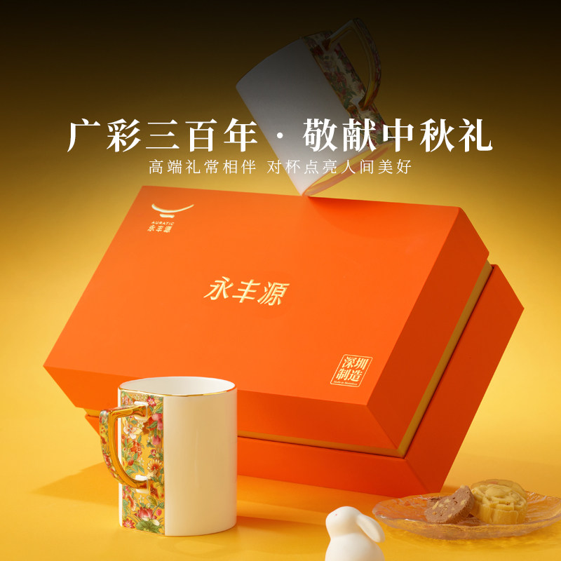 永丰源 广彩传承2头对杯马克杯 高档陶瓷马克杯水杯礼盒