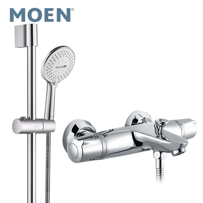 摩恩卫浴花洒套装淋浴家用简易洗浴恒温浴室喷头无顶喷卫生间沐浴