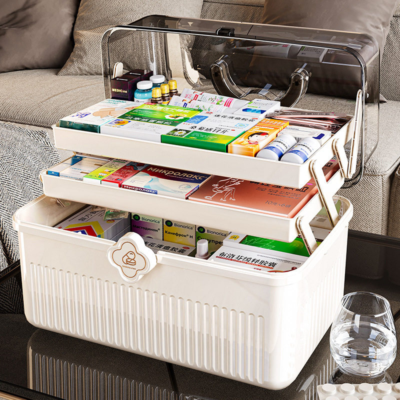 药箱家庭装医疗箱大号翻盖式抽屉药品整理柜家用大容量药物收纳盒