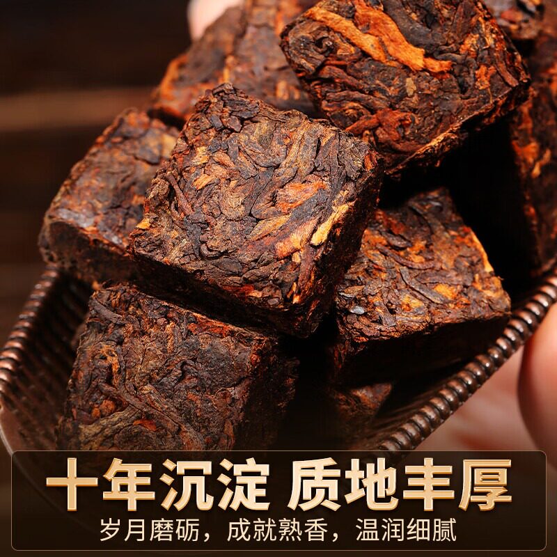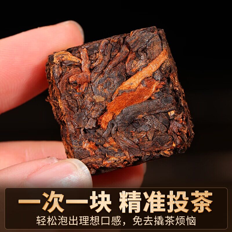 宫明茶叶 云南普洱茶熟茶糯米香小金砖普洱熟茶小圆饼320克礼盒装