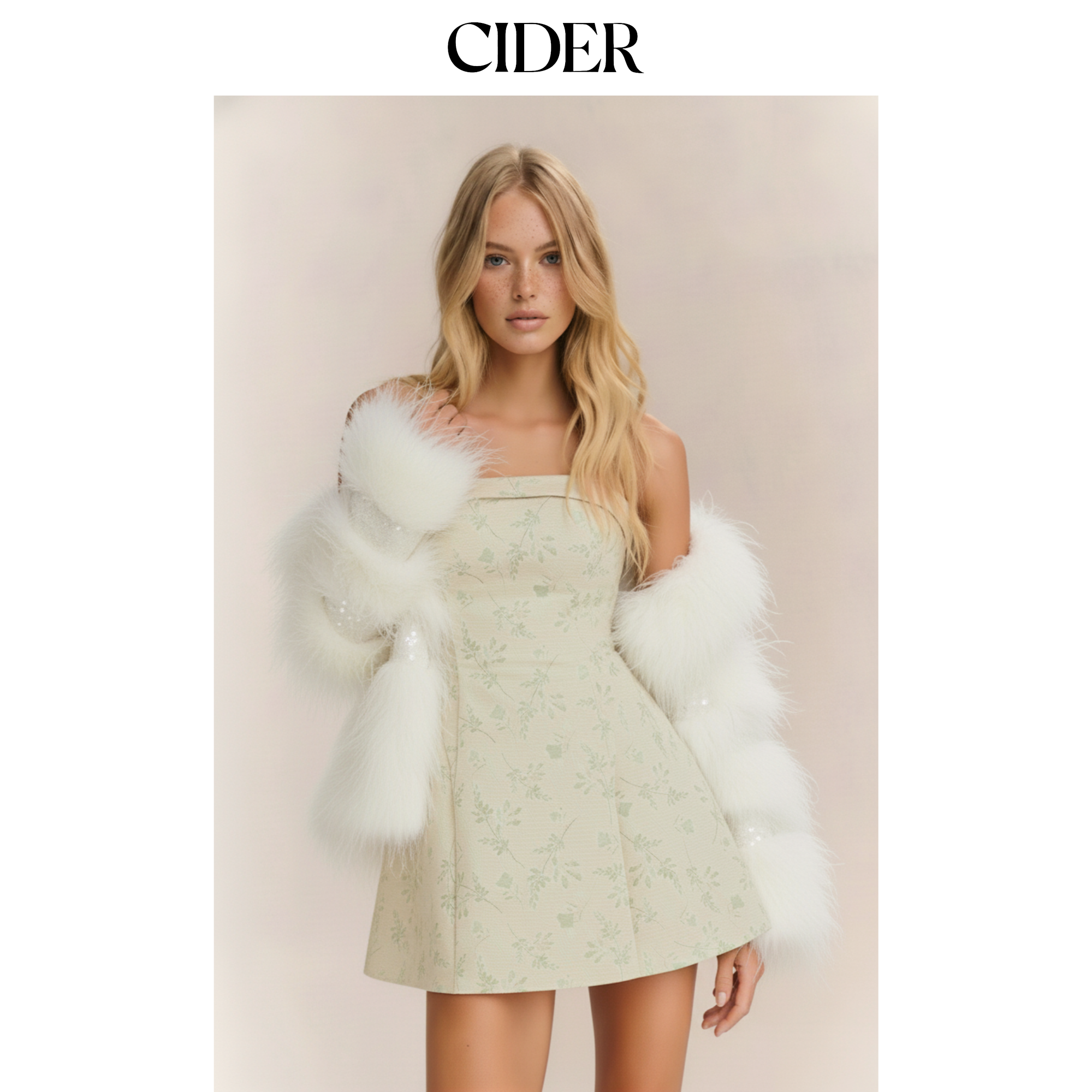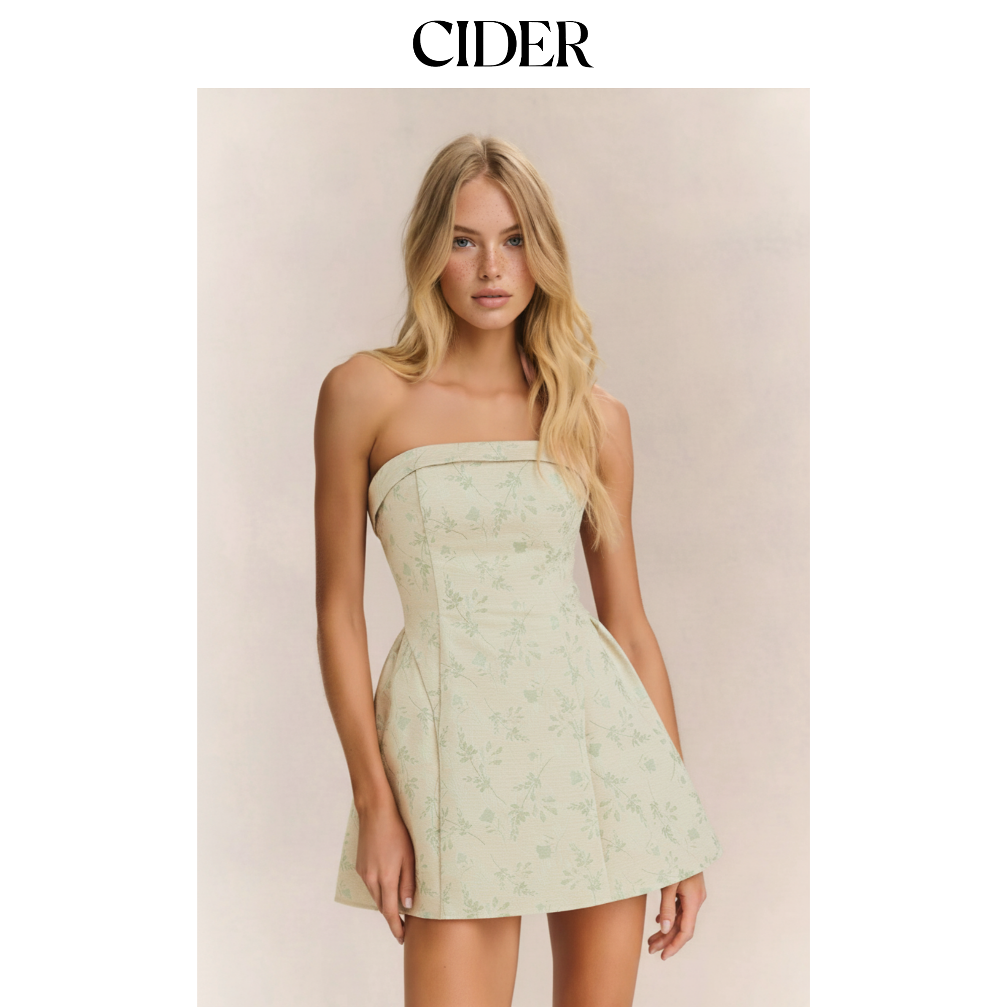 CIDER提花碎花系带露背迷你抹胸裙114871863