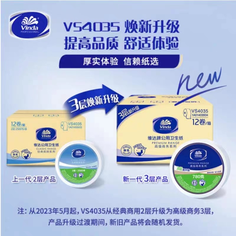 维达vs4035大盘纸大卷纸厕纸商用酒店卫生间3层780克整箱12卷