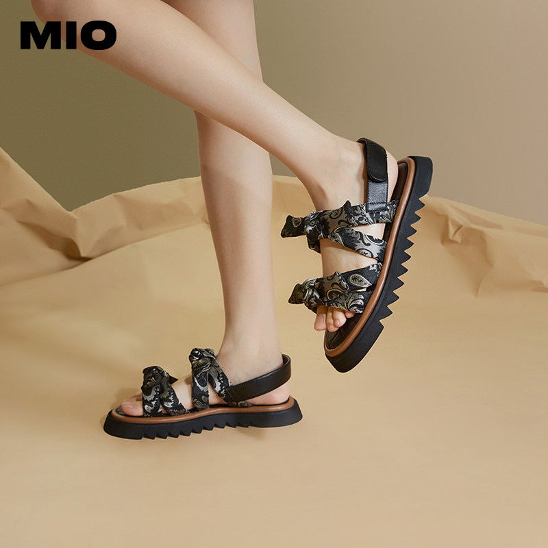 MIO米奥夏季低跟舒适休闲凉鞋复古蝴蝶新中式厚底凉拖女鞋