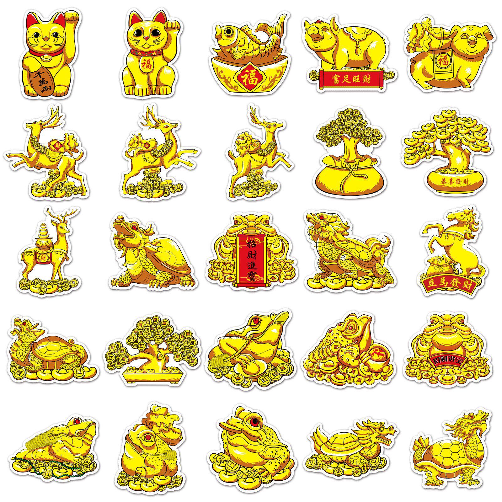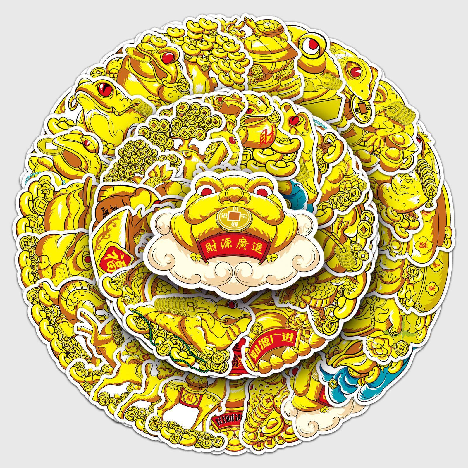 新年招财吉祥物贴纸中国风手机壳电脑平板门店柜台收银台装饰贴画