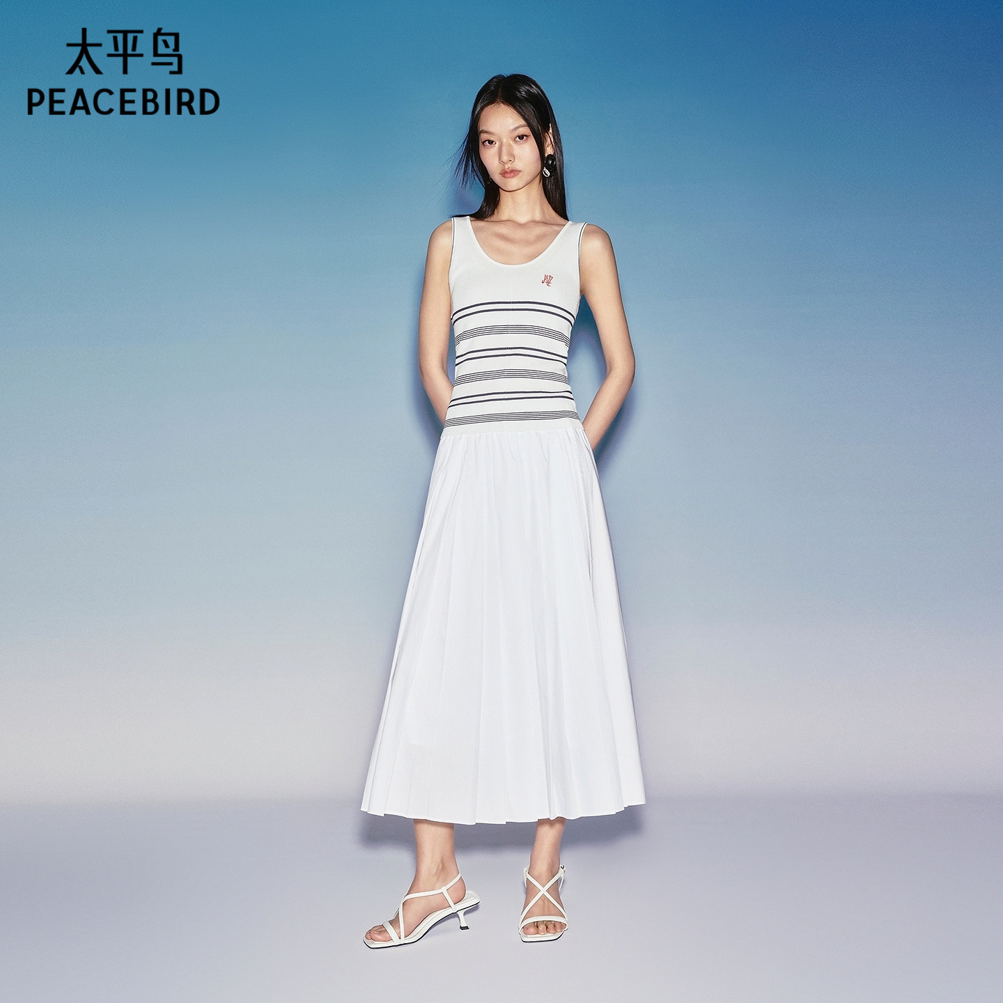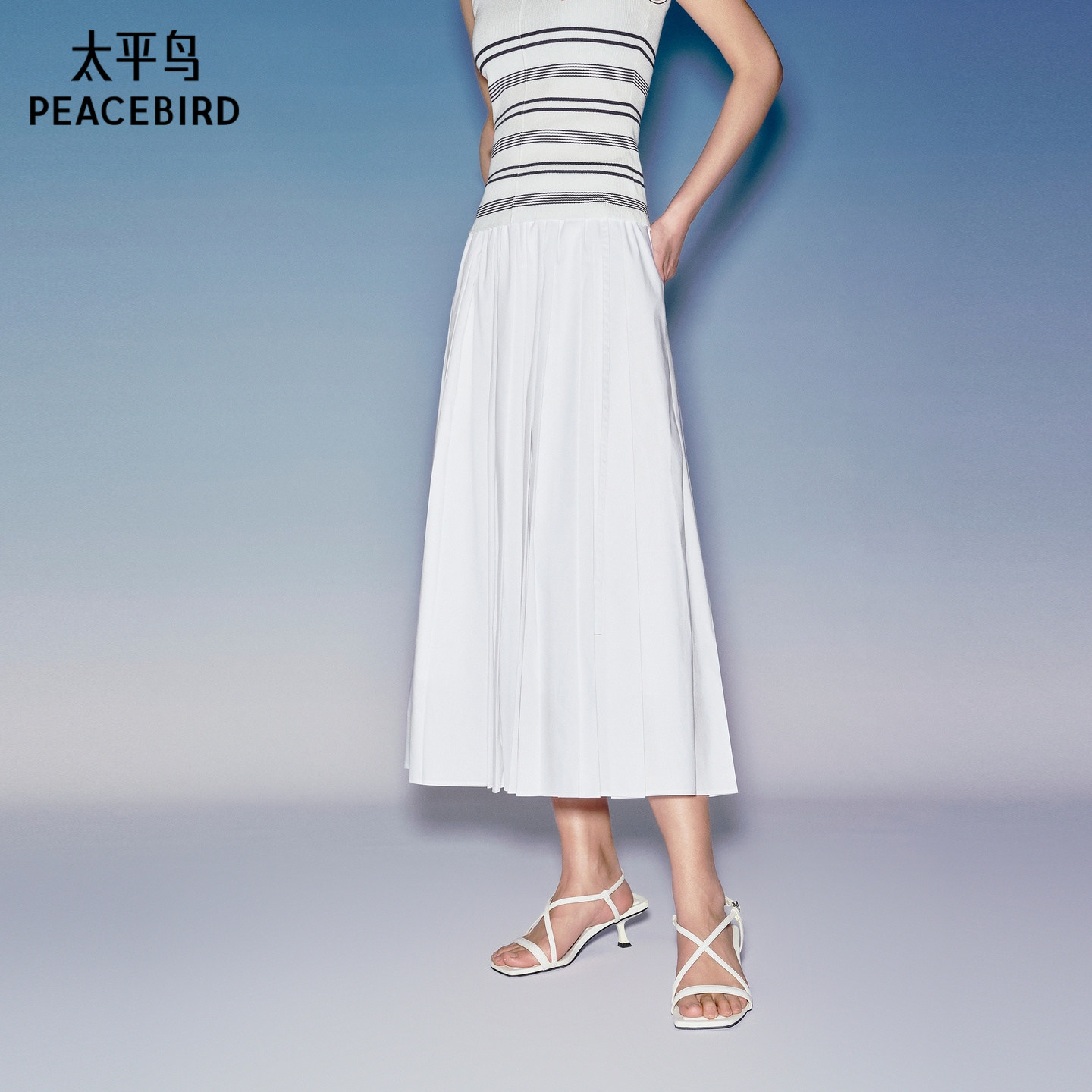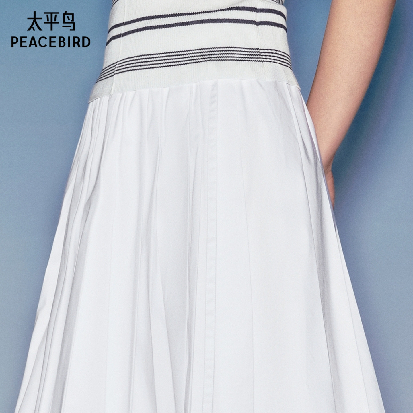 【商场同款】太平鸟夏装白色A字百褶时尚伞裙品质半身裙A1GFG2130