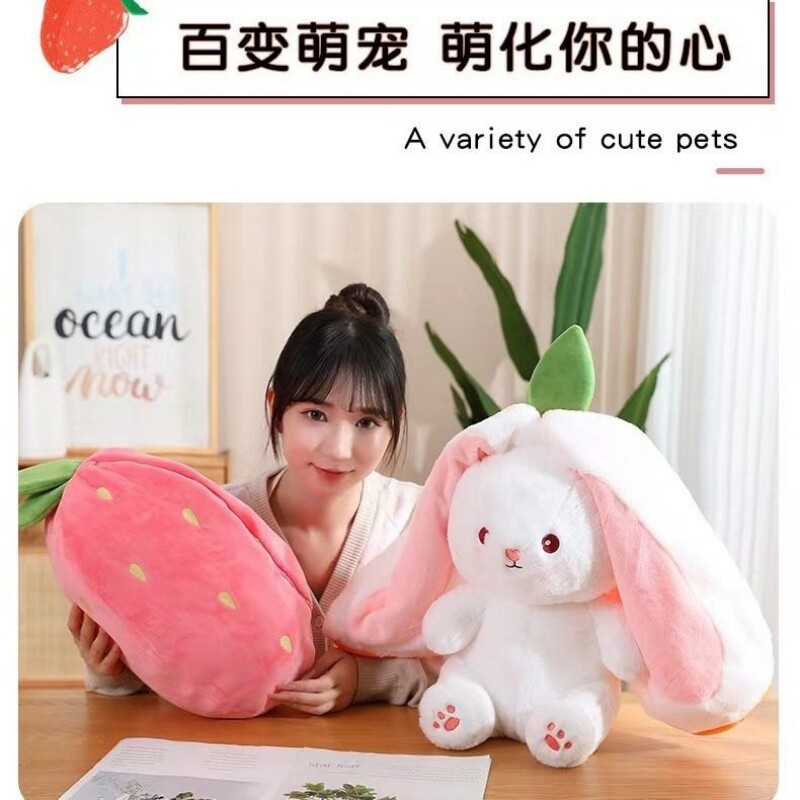草莓变身兔子玩偶毛绒玩具水果胡萝卜娃娃公仔儿童送女友睡觉抱枕