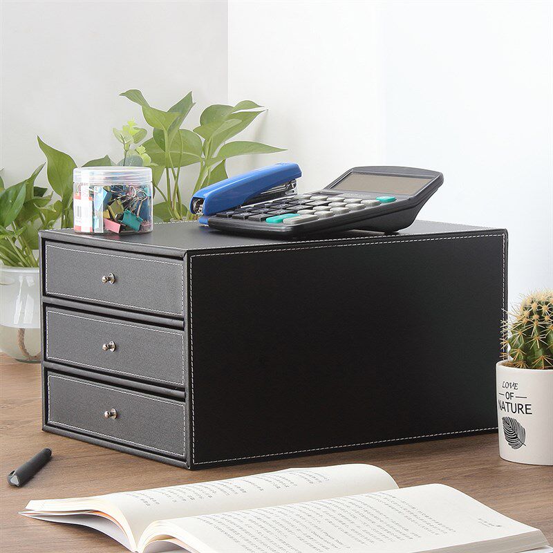 多层商务皮革A4桌面文件柜三层抽屉资料柜整理分类档案柜办公用品