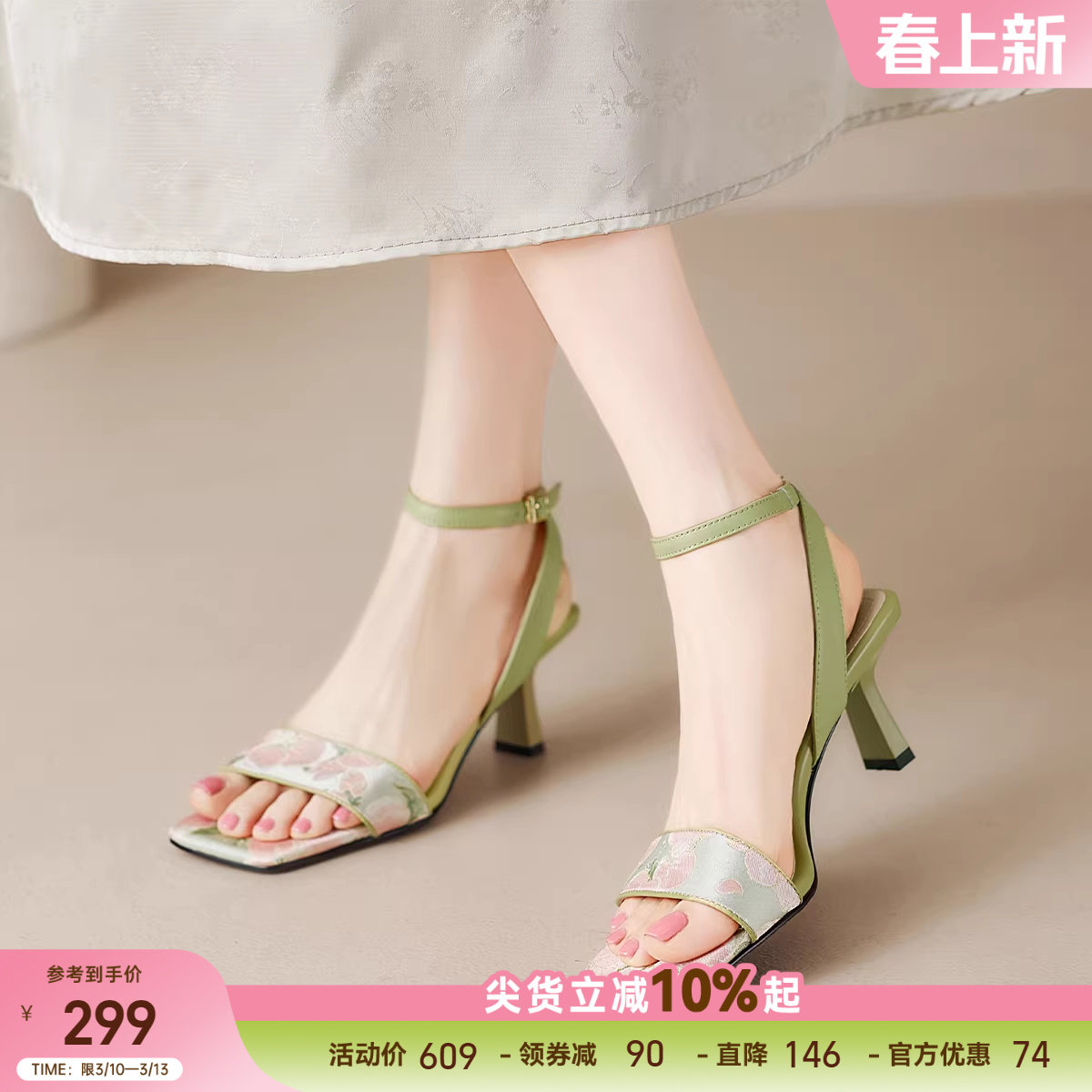 星期六夏季新款气质一字带高跟鞋女方头不累脚通勤时装凉鞋配裙子