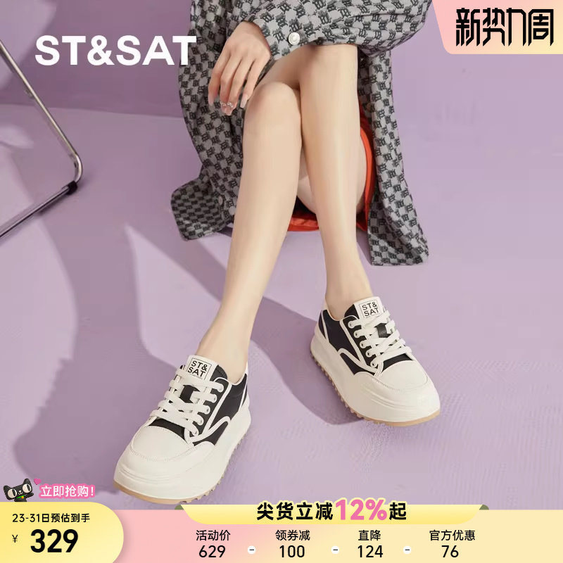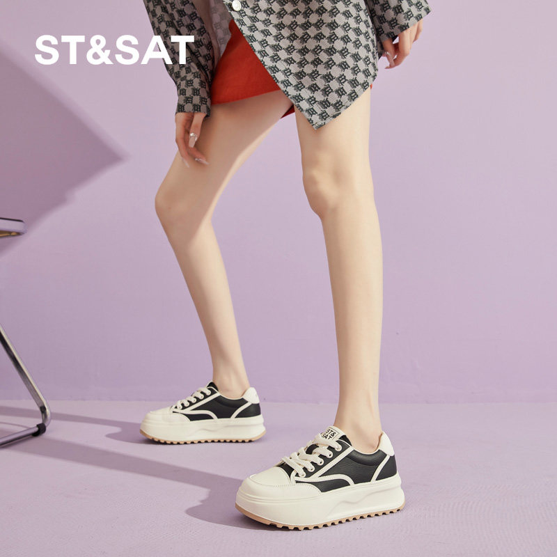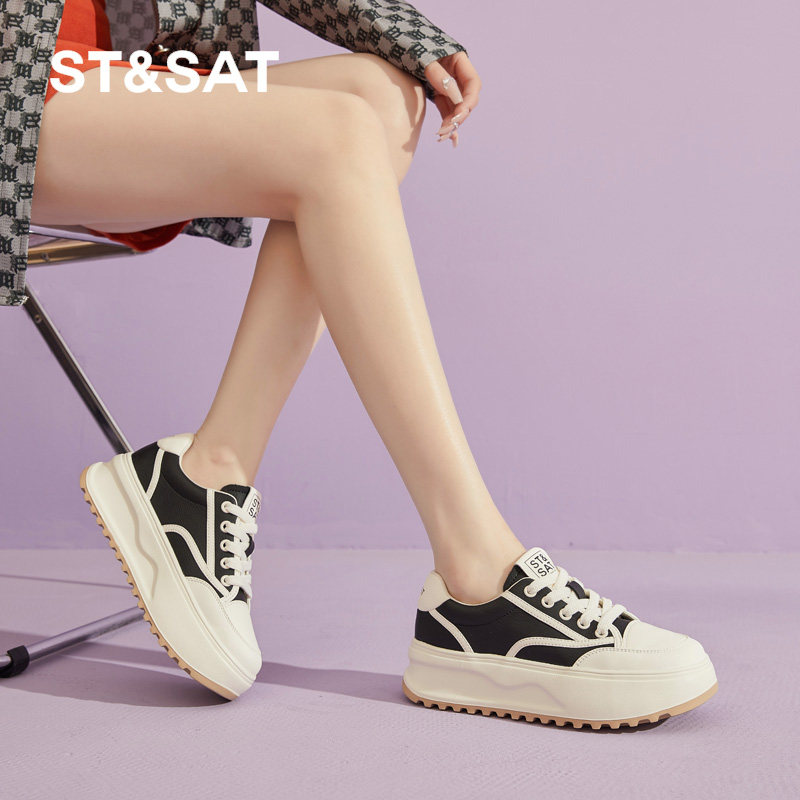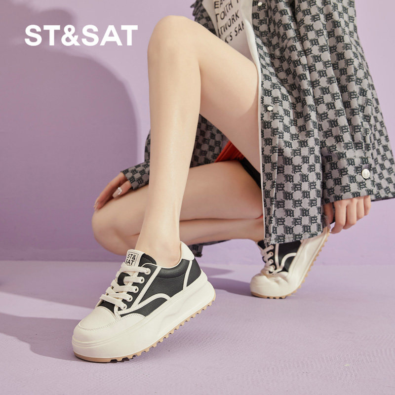 星期六厚底小白鞋女春季新款增高运动鞋女士黑白百搭休闲平板鞋直