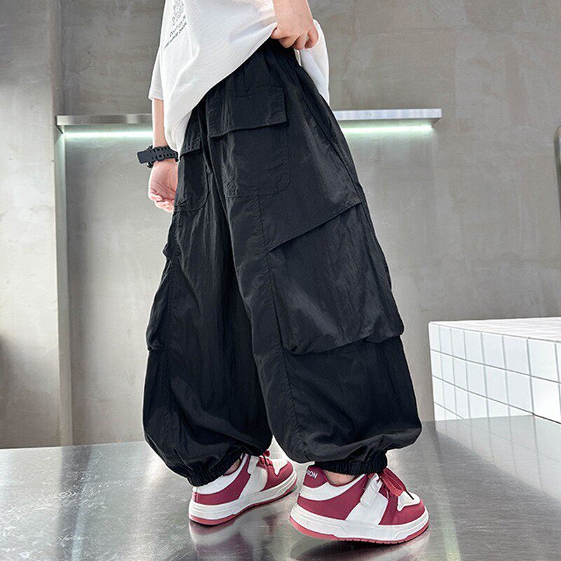 男童夏薄款裤子工装裤2025新款中大童速干防蚊裤炸街痞帅束脚裤子