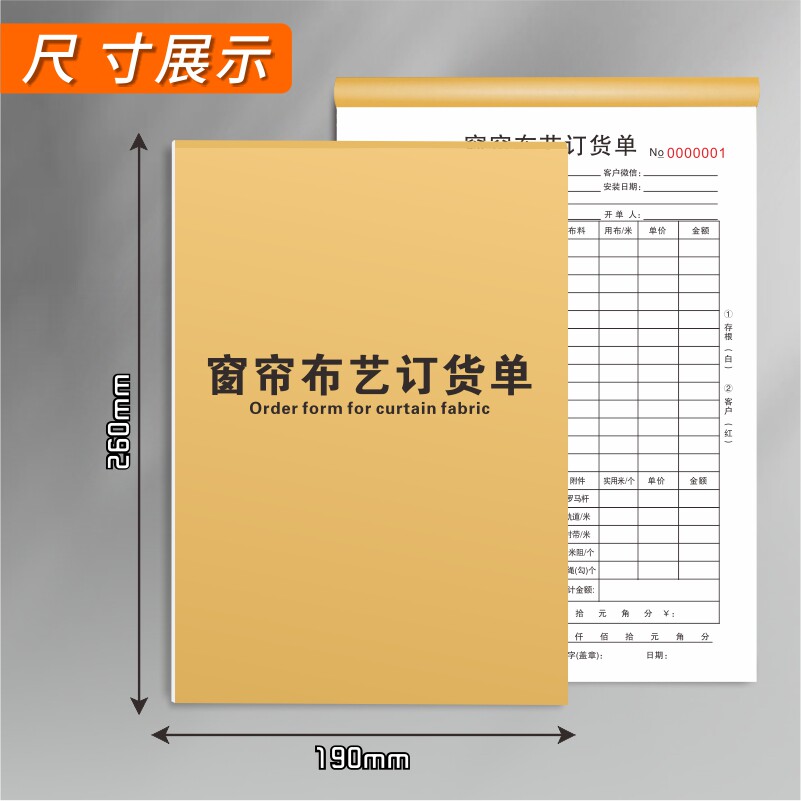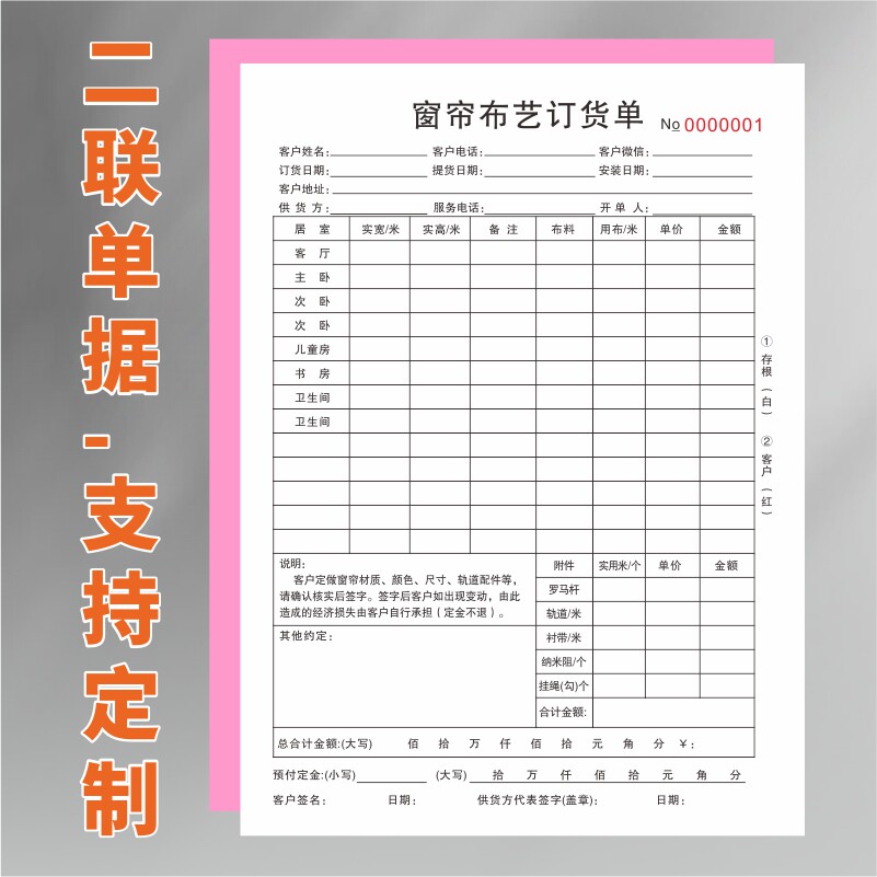 窗帘布艺订货单单据收据合同单布艺订货单二联窗帘订货合约书