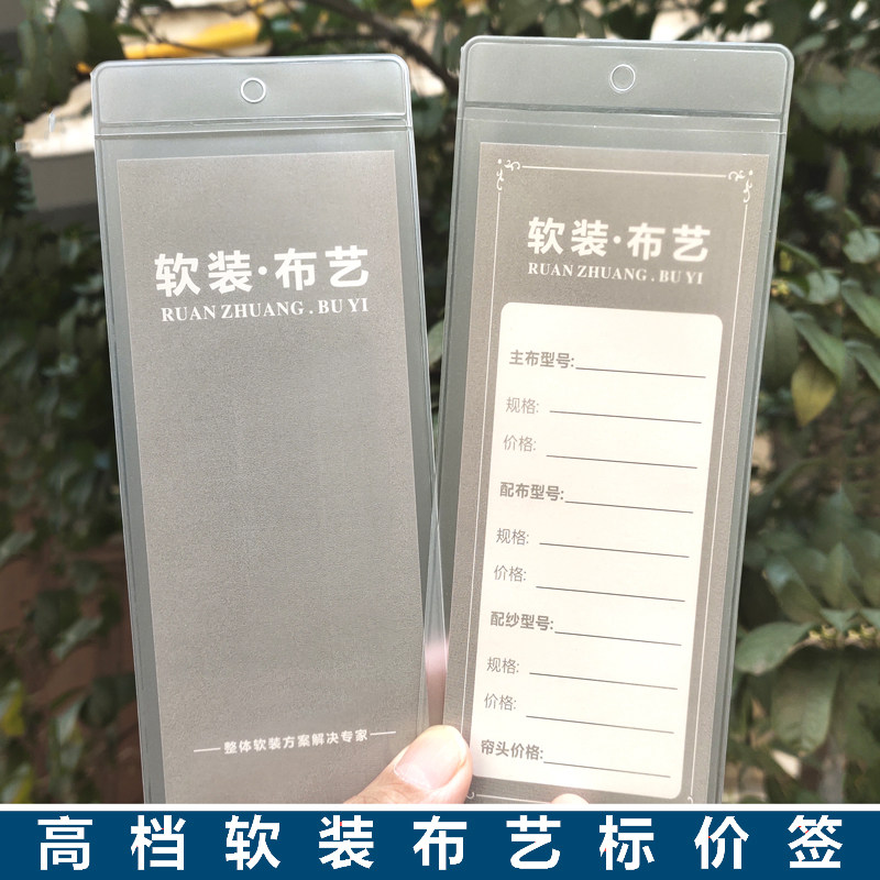 透明袋装窗帘标价卡带袋子的布艺挂牌磨砂袋装标价签窗帘价格吊牌