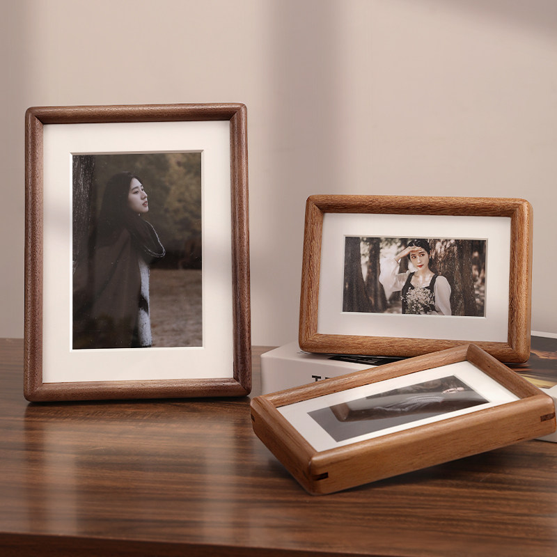 实木洗照片做成相框摆台6寸7榫卯8高级感照片打印加定制diy六框架