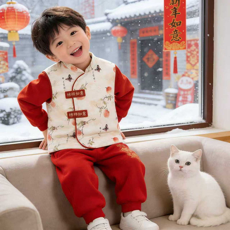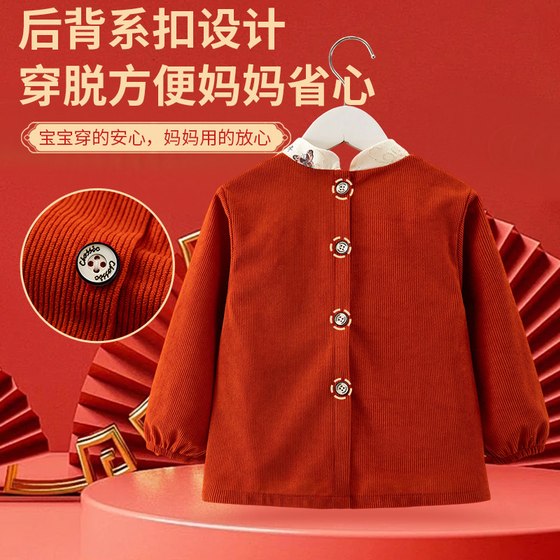 中国风新年宝宝罩衣儿童秋冬季外穿洋气拜年服唐装围兜反穿衣护衣
