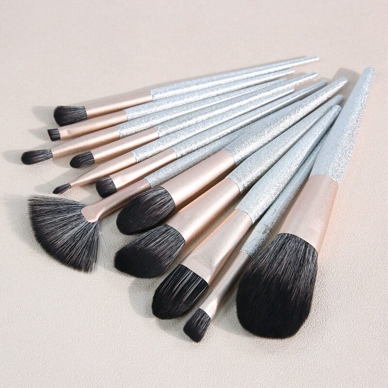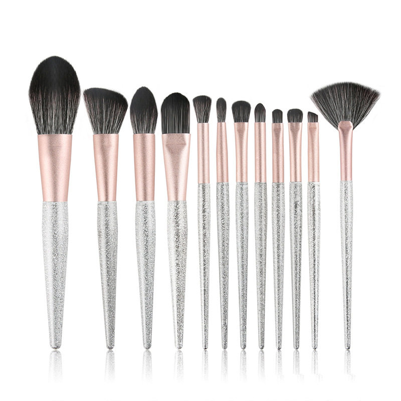 12支3D银色化妆刷套装全套散粉刷美妆工具软毛粉底眼影刷跨境批发