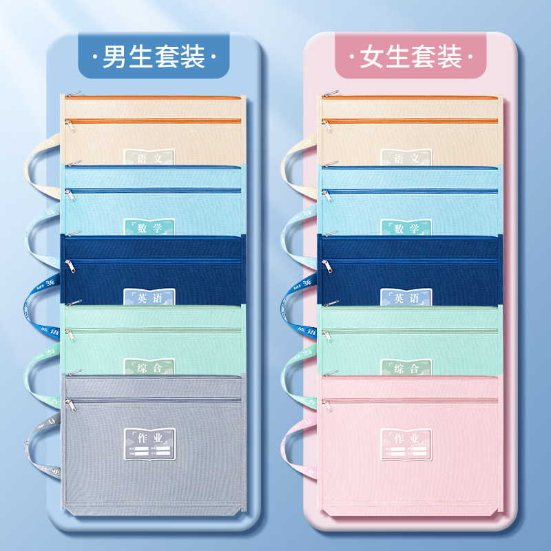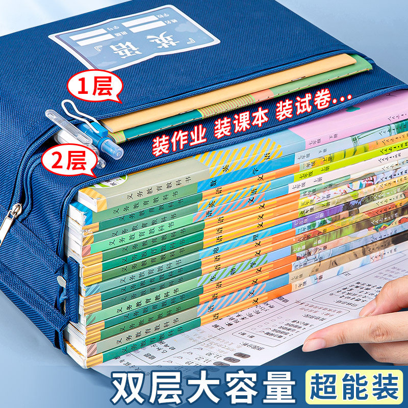 书本分类袋小学生文件袋拉链式书本课本分科补习袋文件袋试卷收纳袋装卷子资料作业袋子手提双层大容量帆布袋