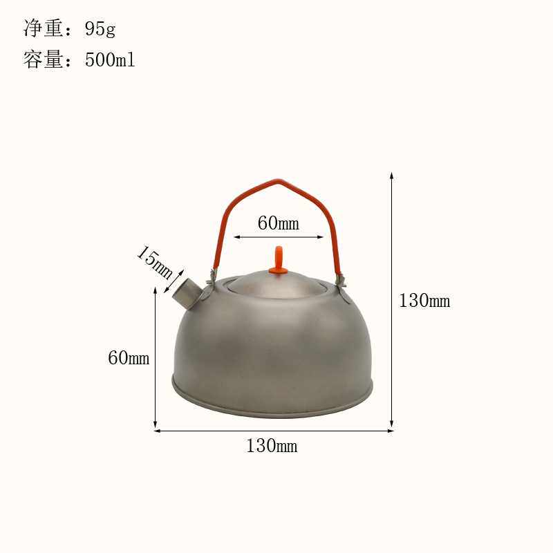 厂家供应户外野炊便携A23G001J0 纯钛水壶0.5L水壶野营用品泡茶壶
