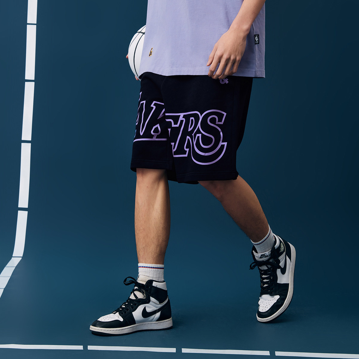 杰克琼斯春季男士NBA联名湖人队时尚运动印花短裤男装