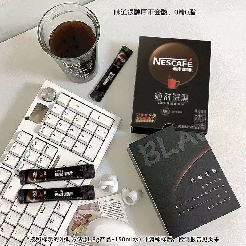 雀巢咖啡绝对深黑深度咖啡粉办公学生醇品黑咖啡烘焙饮料盒装速溶