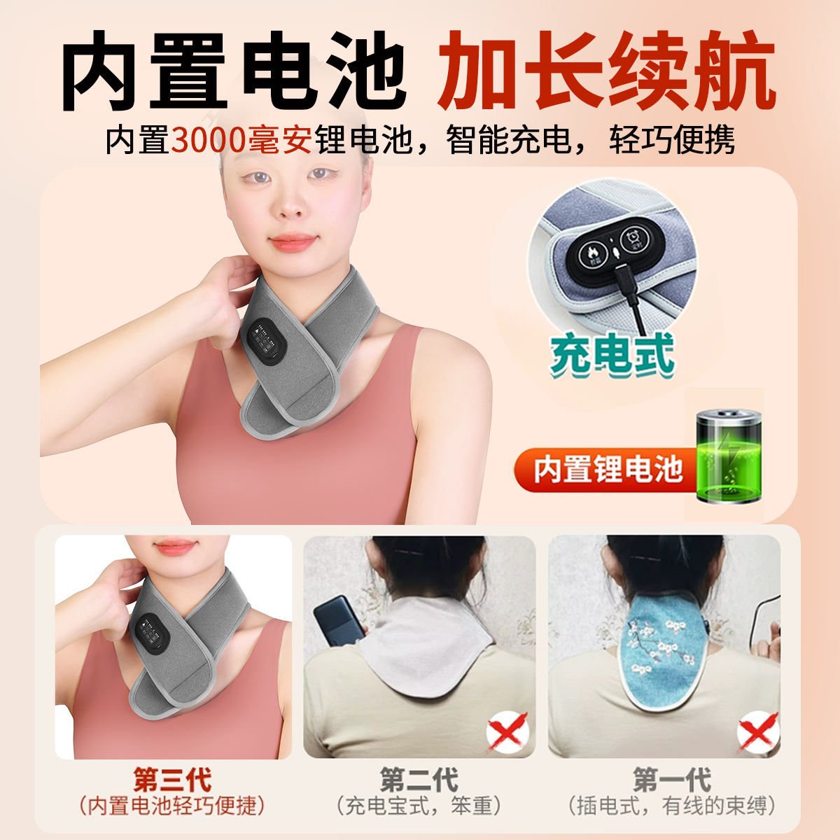 充电护颈脖套加热颈椎艾灸热敷袋理疗保暖围脖子按摩神器发热颈托