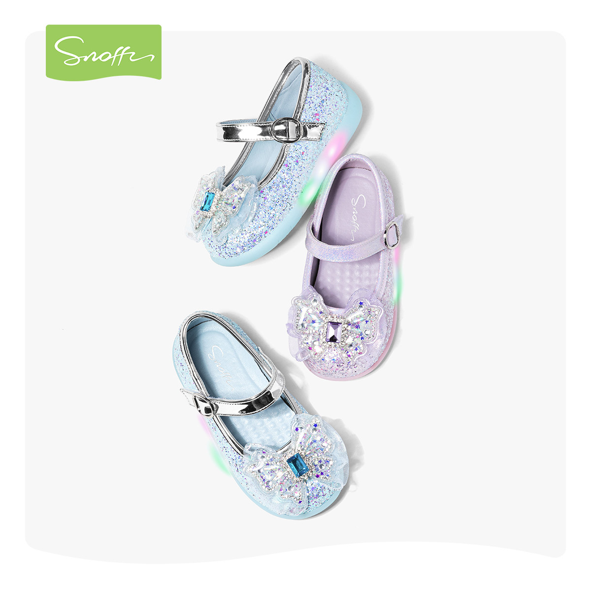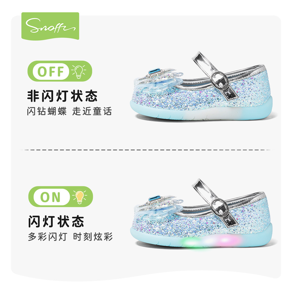 闪灯鞋|斯纳菲女童水晶鞋春季新款2026小女孩爱莎软底防滑宝宝鞋