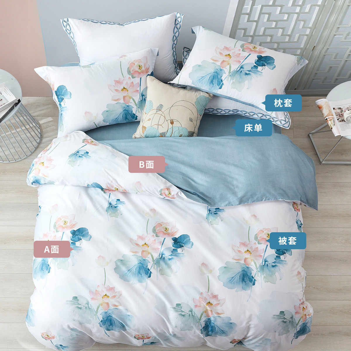 无印良品高级感床上四件套全棉纯棉双人被套床单笠轻奢床品三件套