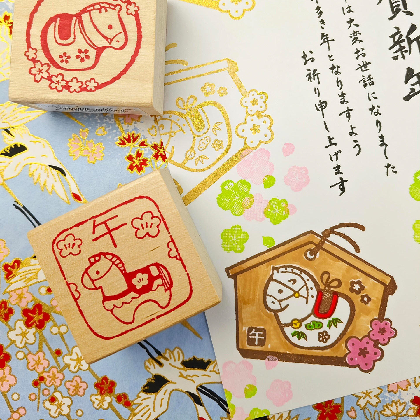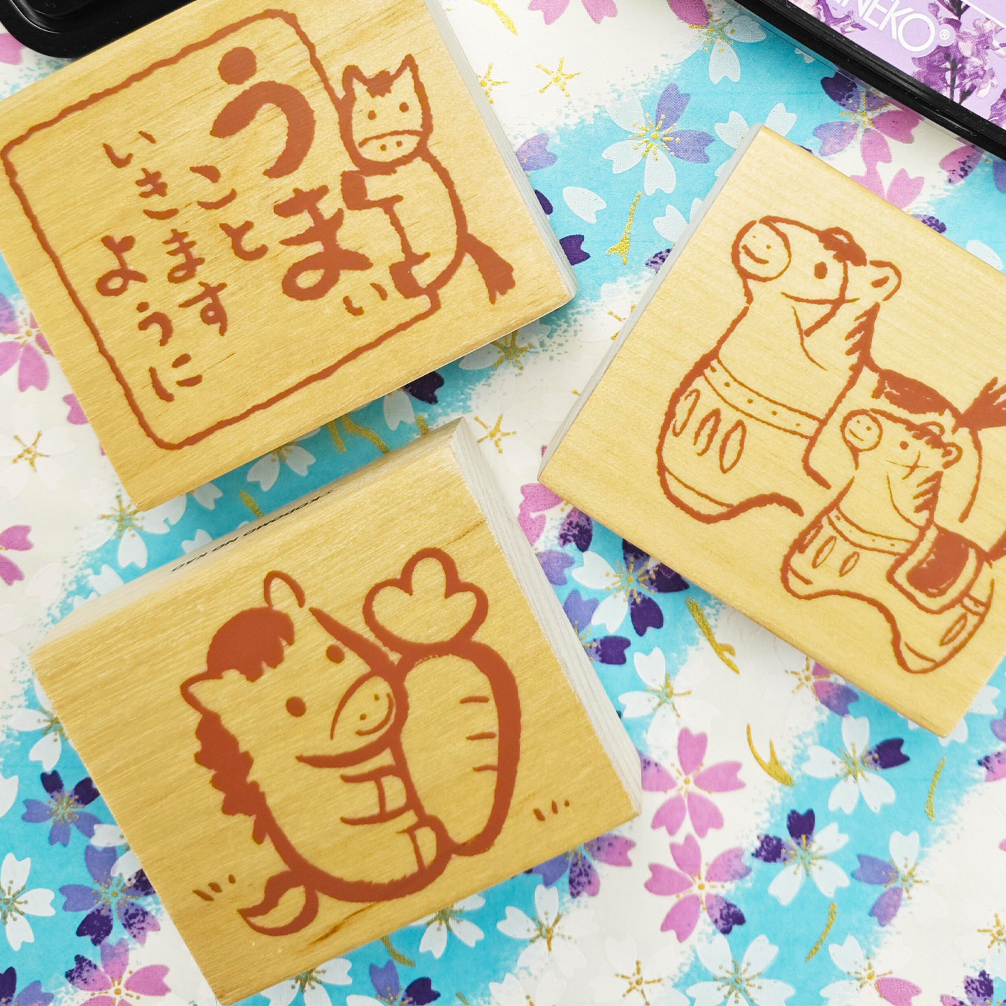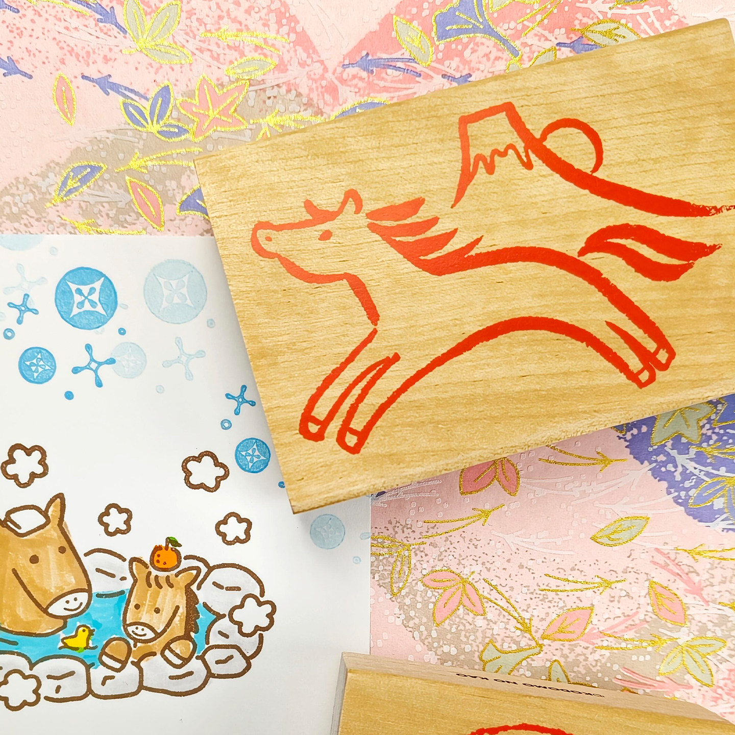 日本KODOMO NO KAO童颜木头印章新年年贺木制图章马年限定生肖午马2026年元旦春节手帐DIY装饰素材卡通可爱