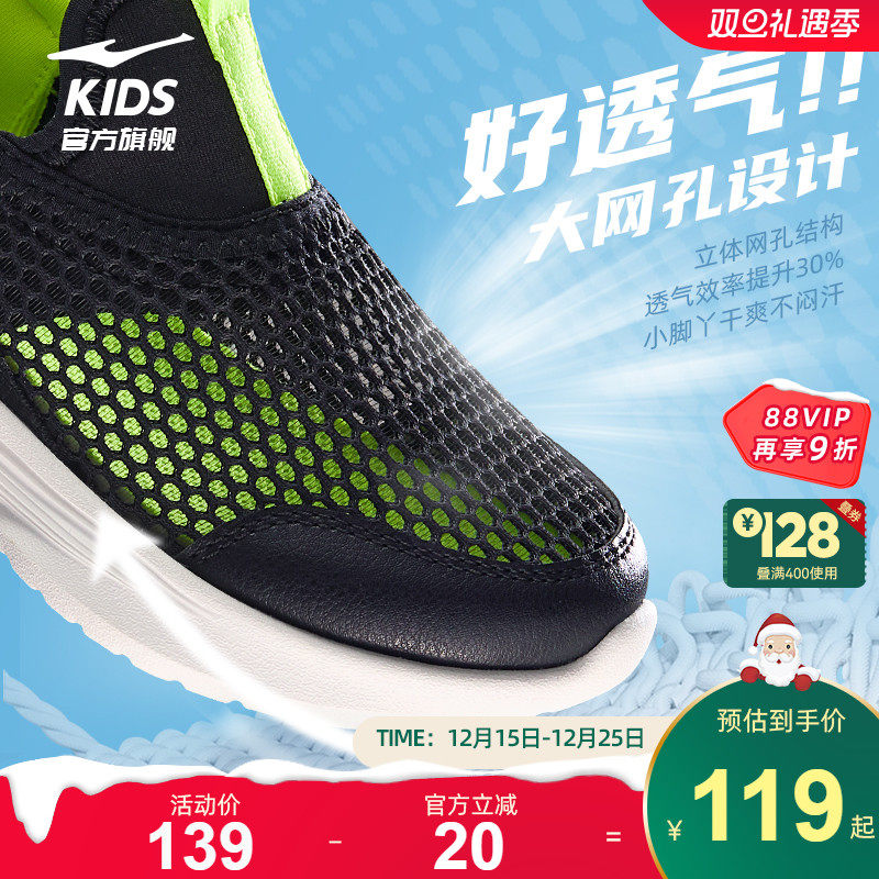 逐夏|鸿星尔克童鞋儿童网面凉鞋一脚蹬夏季大网眼男童鞋透气网鞋
