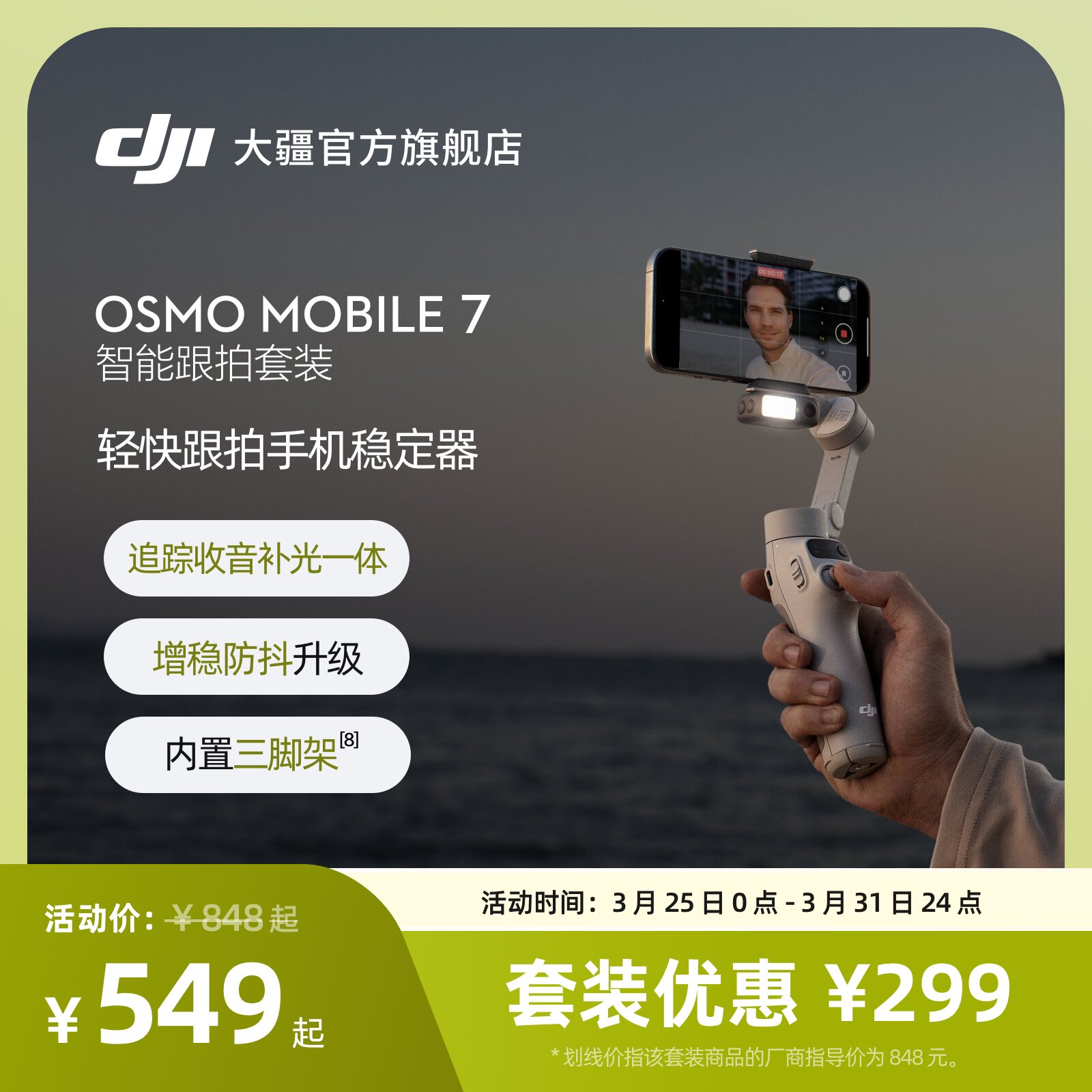 (新品)大疆 DJI Osmo Mobile 7P /OM7/OM8全场景跟拍手机稳定器 直播vlog防抖手持云台 可折叠自拍杆拍摄神器