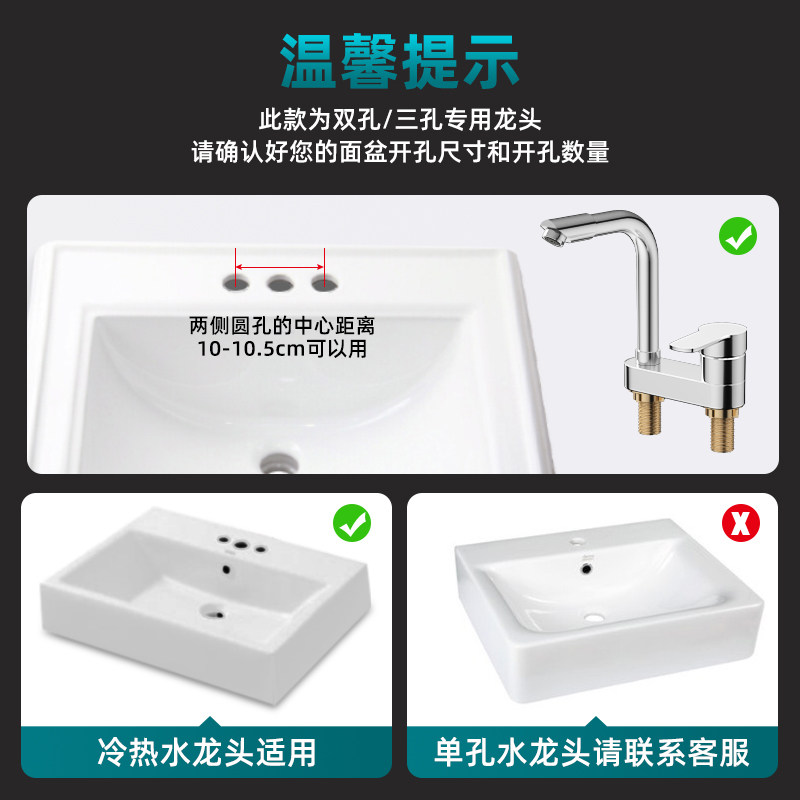 卫生间洗脸盆双孔水龙头冷热水二合一浴室洗手池洗漱台铜面盆龙头