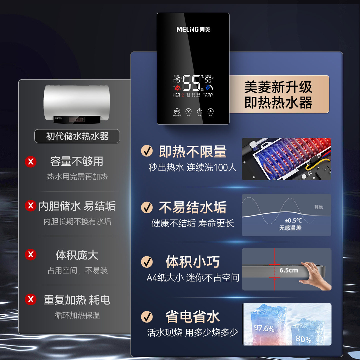 即开即热 2秒速热 恒温速热 一年换新