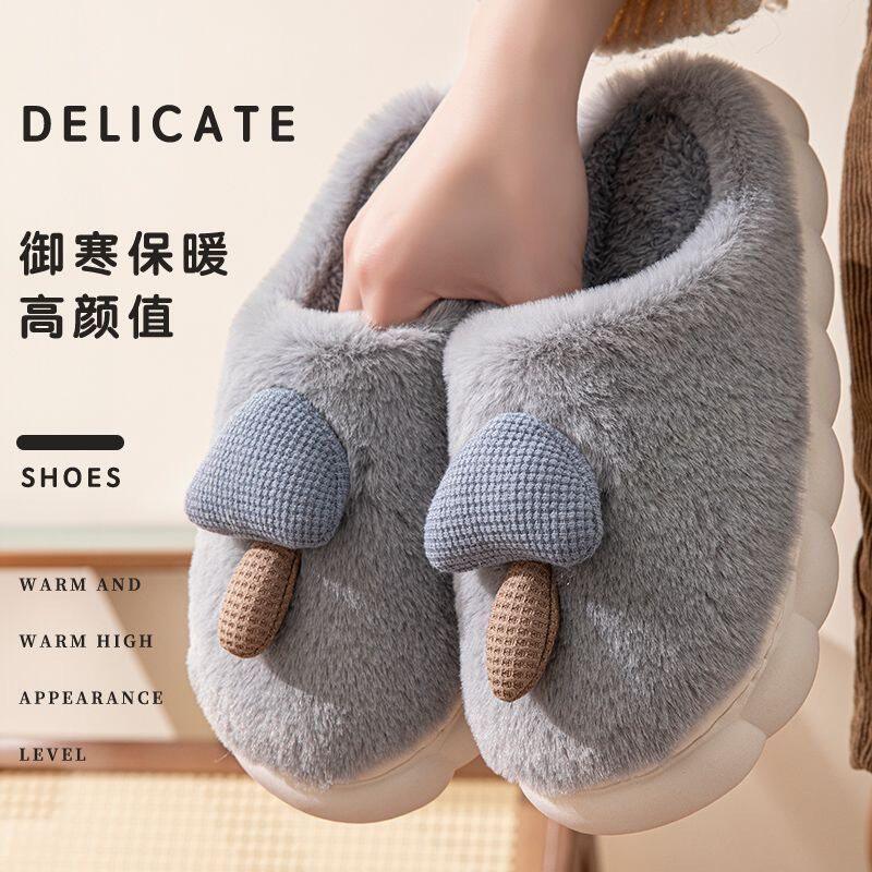 2026棉拖鞋女冬款蘑菇室内家居家用保暖毛绒拖鞋厚底情侣棉鞋男