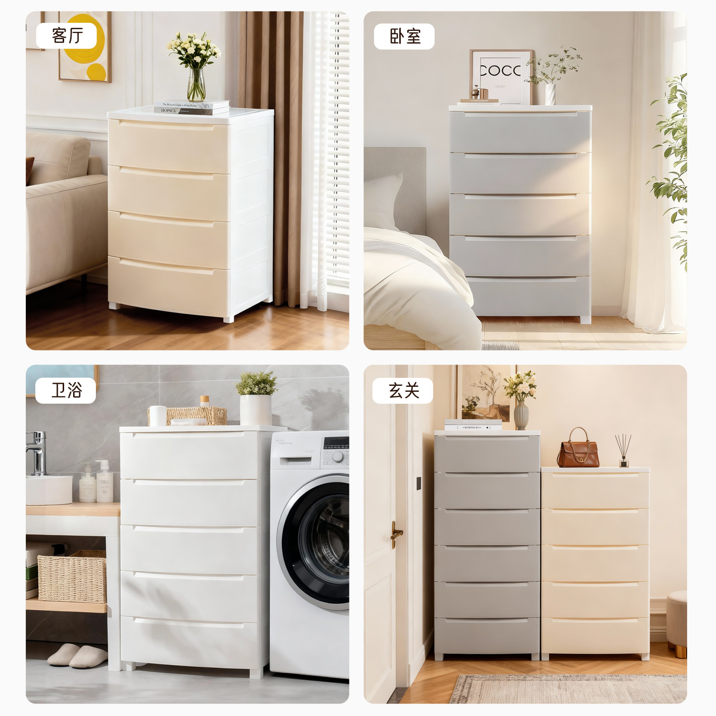 多层抽屉式收纳柜带轮储物柜整理箱盒塑料玩具柜子床头柜磁吸家用