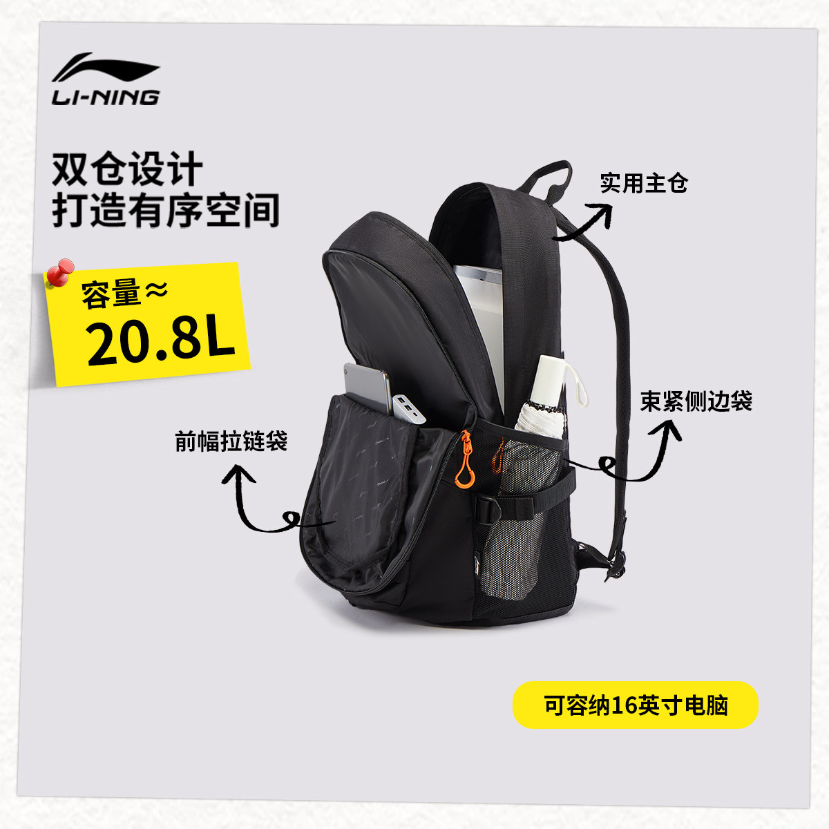 李宁双肩包男包女包 新款运动生活系列背包学生书包反光运动包
