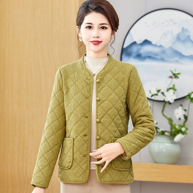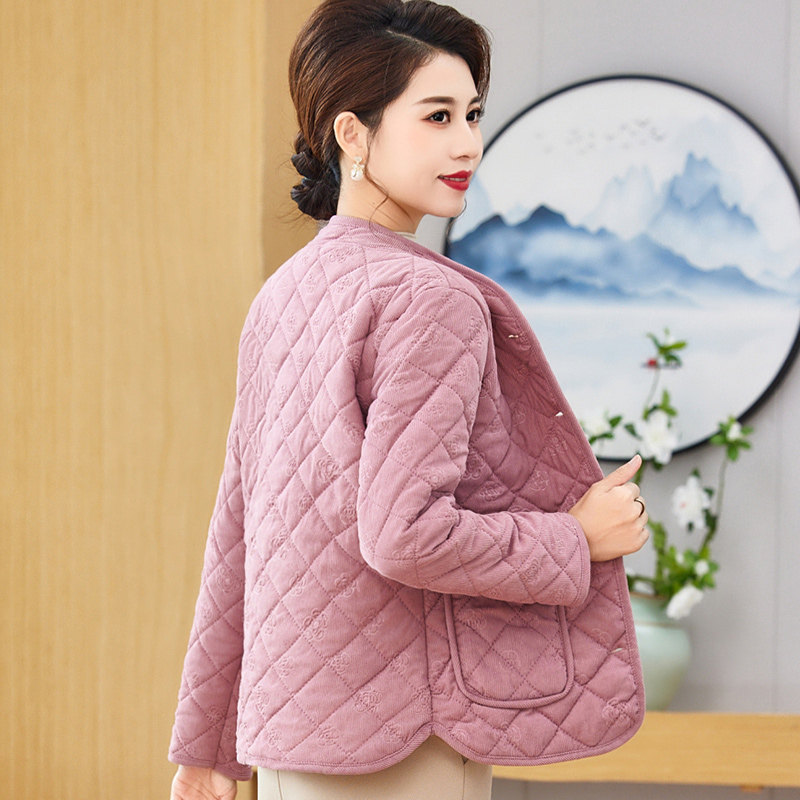 妈妈秋冬装薄款小棉衣加绒保暖棉服外套洋气中老年女装春秋小棉袄