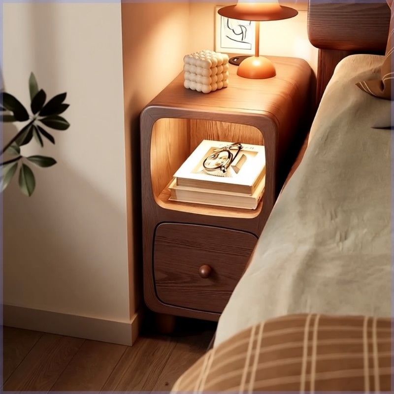 床头柜实木卧室边柜简约床边储物小柜子小型极窄收纳原木色充电