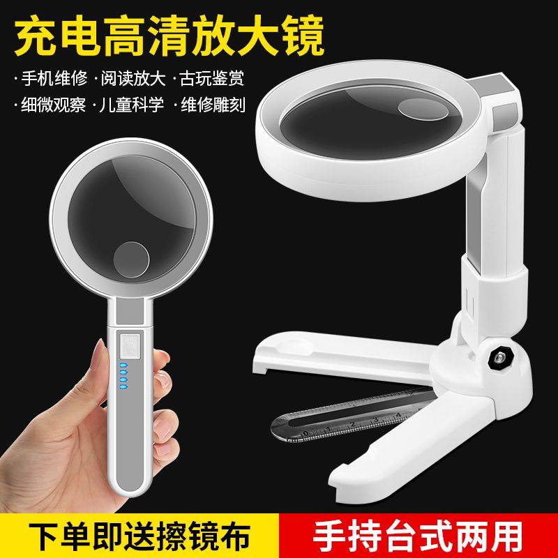 60倍手持台式放大镜电子手机维修焊接雕刻鉴定芯片阅读高清20带灯