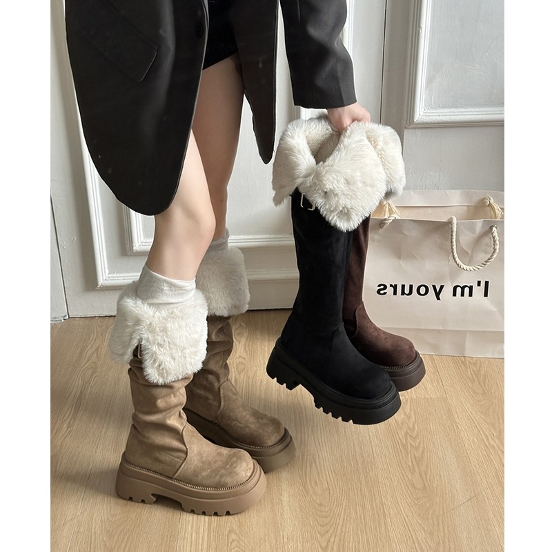 六点大叔小个子内增高两穿高筒靴长筒靴女厚底过膝显瘦绒面长靴子