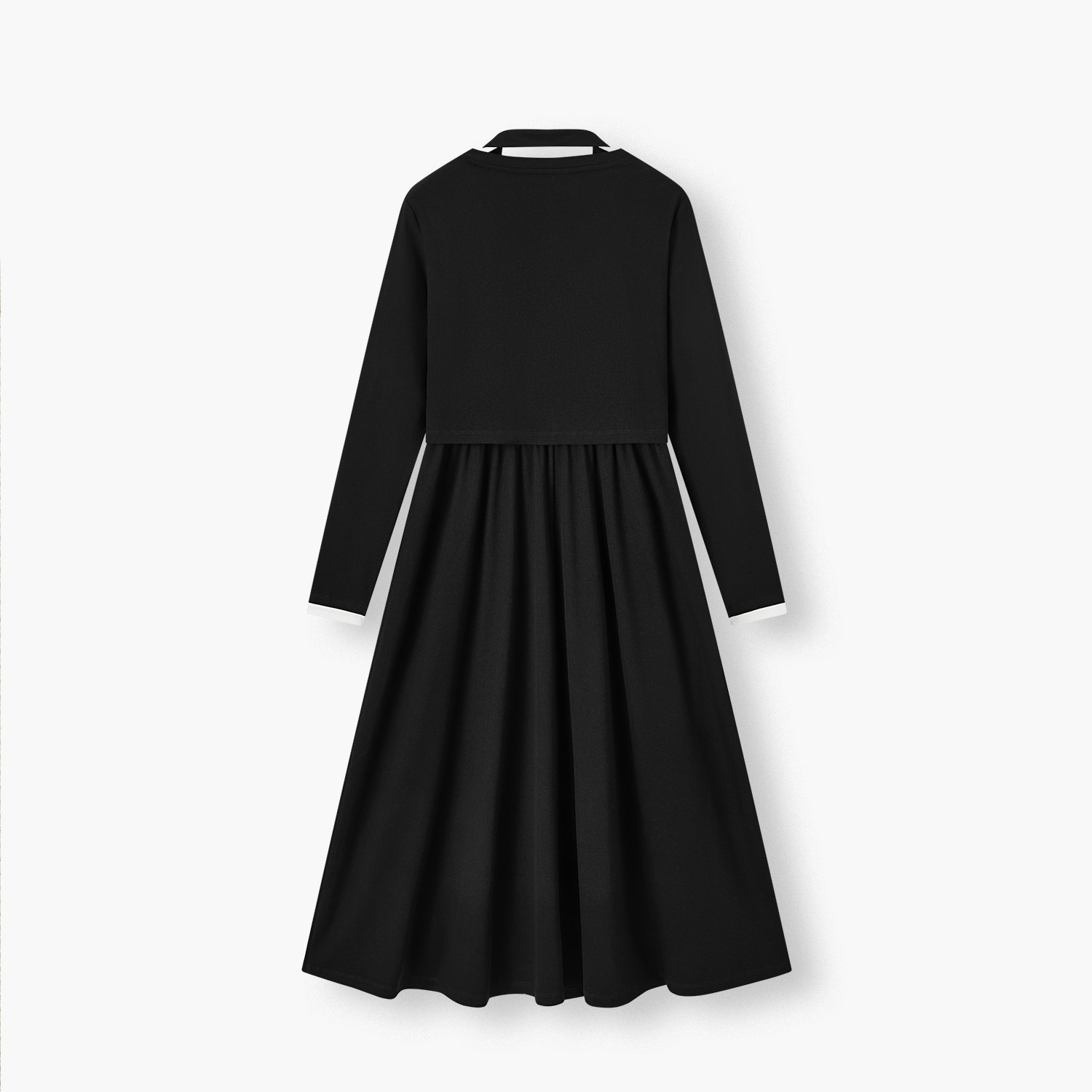 爱居兔时尚两件式连衣裙女2025年秋季新款经典黑白撞色连衣裙套装