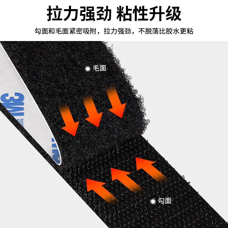 3M正品双面背胶魔术贴强力固定纱窗门帘子母扣贴片家用自粘带胶高粘度车用脚垫隐形固定贴汽车后备箱双面胶条