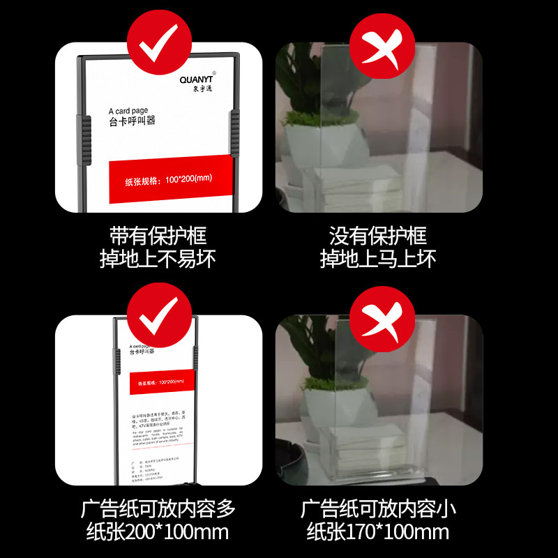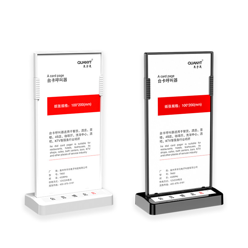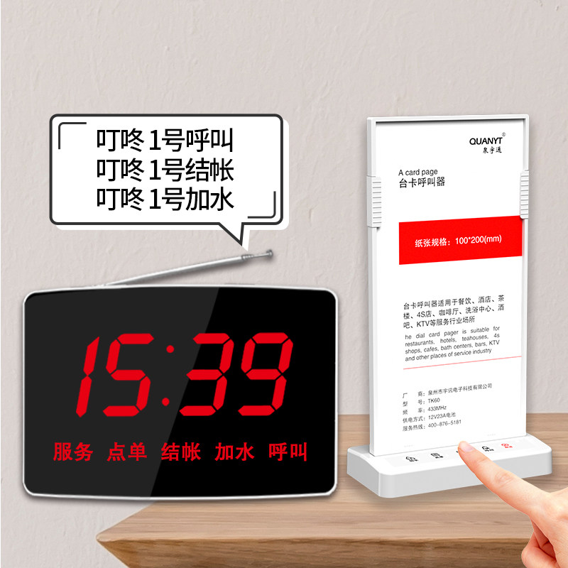 泉宇通台卡酒水牌餐牌桌牌无线呼叫器中西餐饮厅茶楼咖啡厅奶茶店4S包房包间棋牌室服务铃亚克力透明