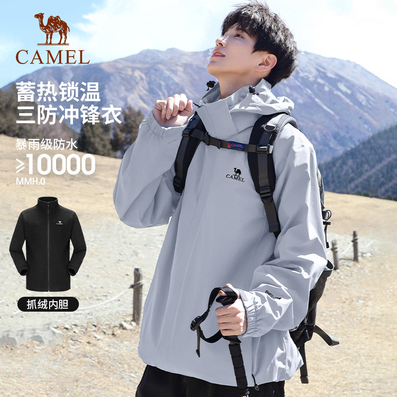 骆驼户外山系冲锋衣男三合一防风防水春夏旅行耐磨登山徒步外套女