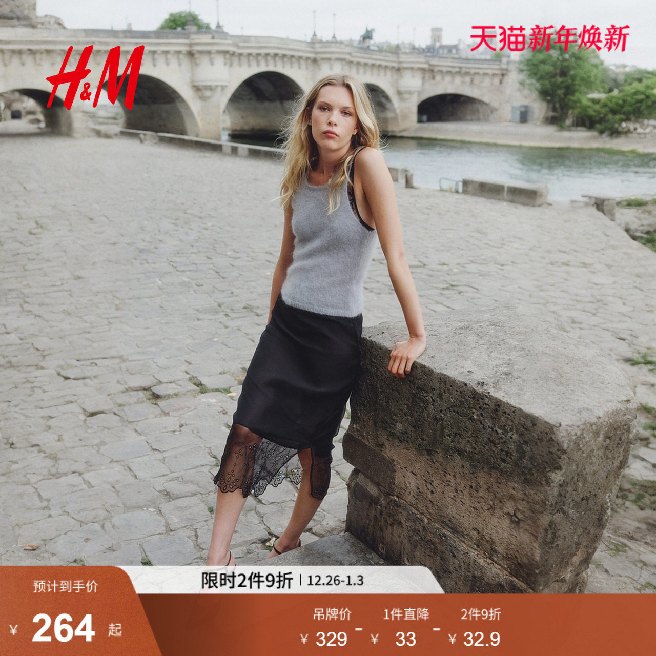 HM女装毛针织衫2025冬季新款圆领时尚气质马海毛混纺背心1300046