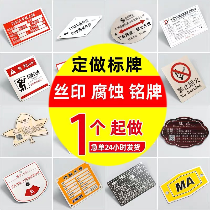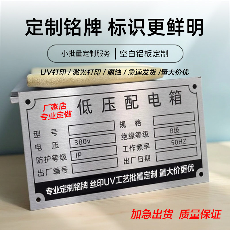 金属铭牌标牌定制订做不锈钢铝腐蚀制作UV丝印刷面板电缆标识定做