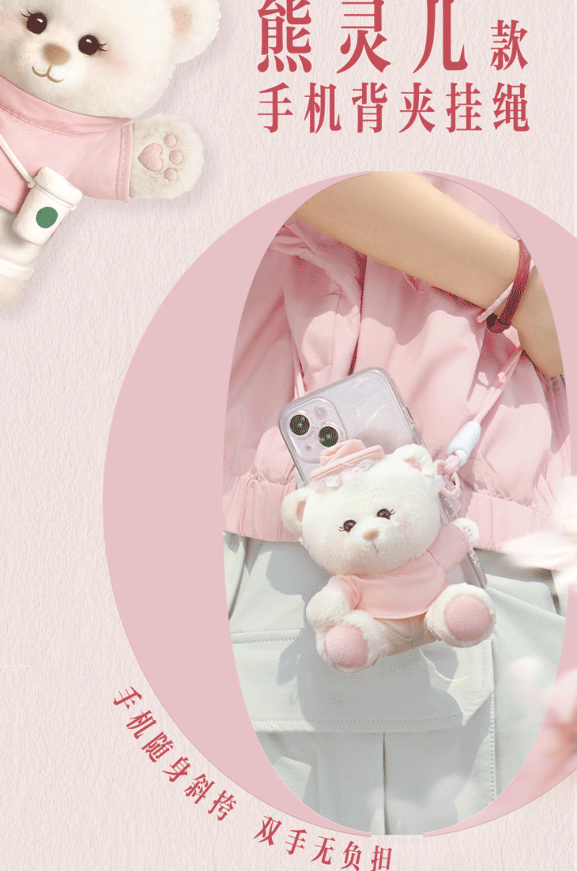 2025星巴克专星送手机背夹可爱熊店长粉粉熊灵儿小熊手机支架挂绳