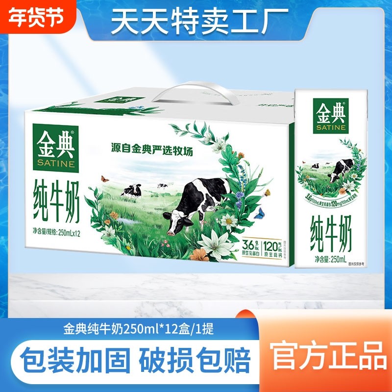 金典纯牛奶250ml*12盒/整箱1提儿童早餐牛奶营养早餐正品高钙常温